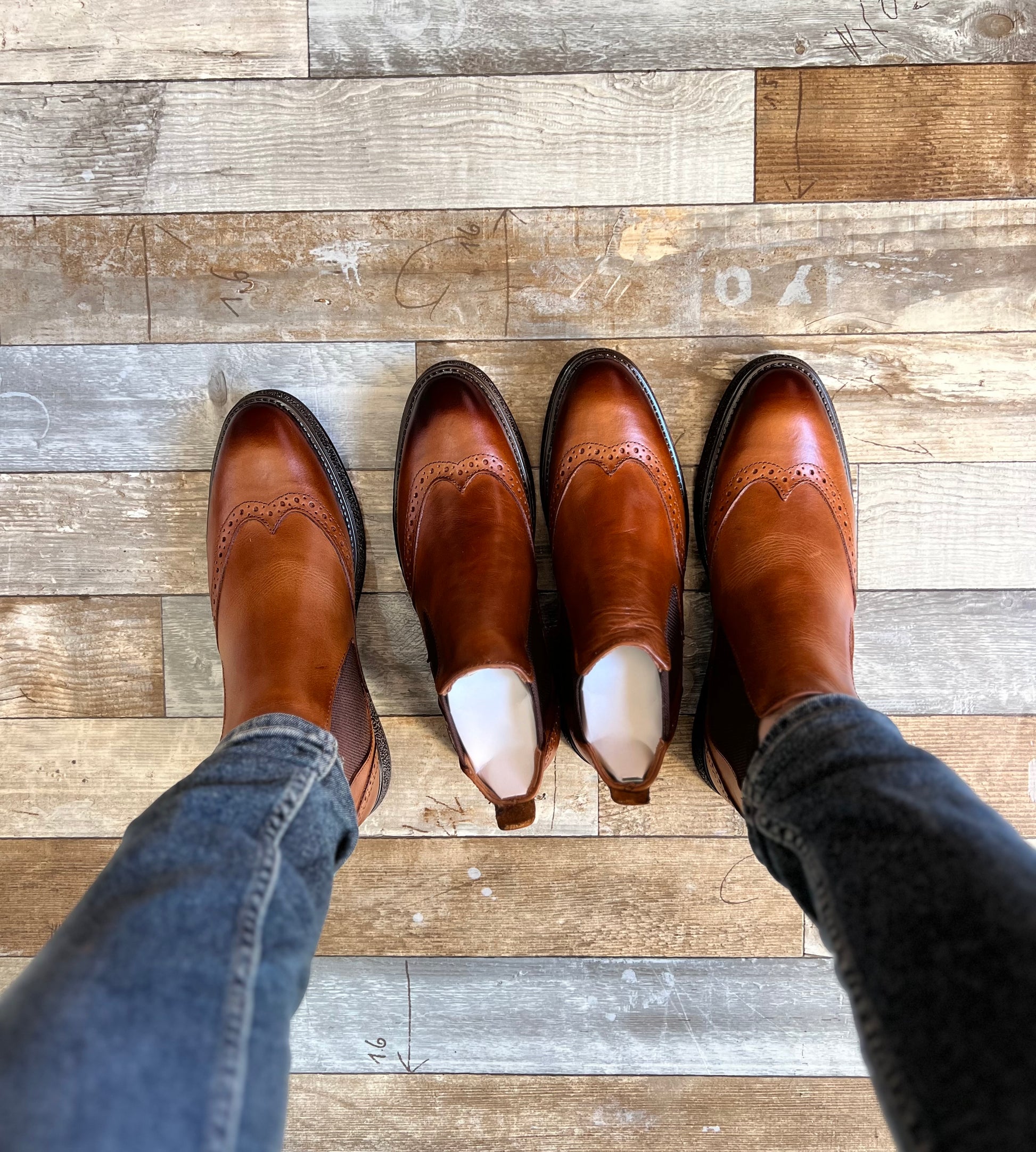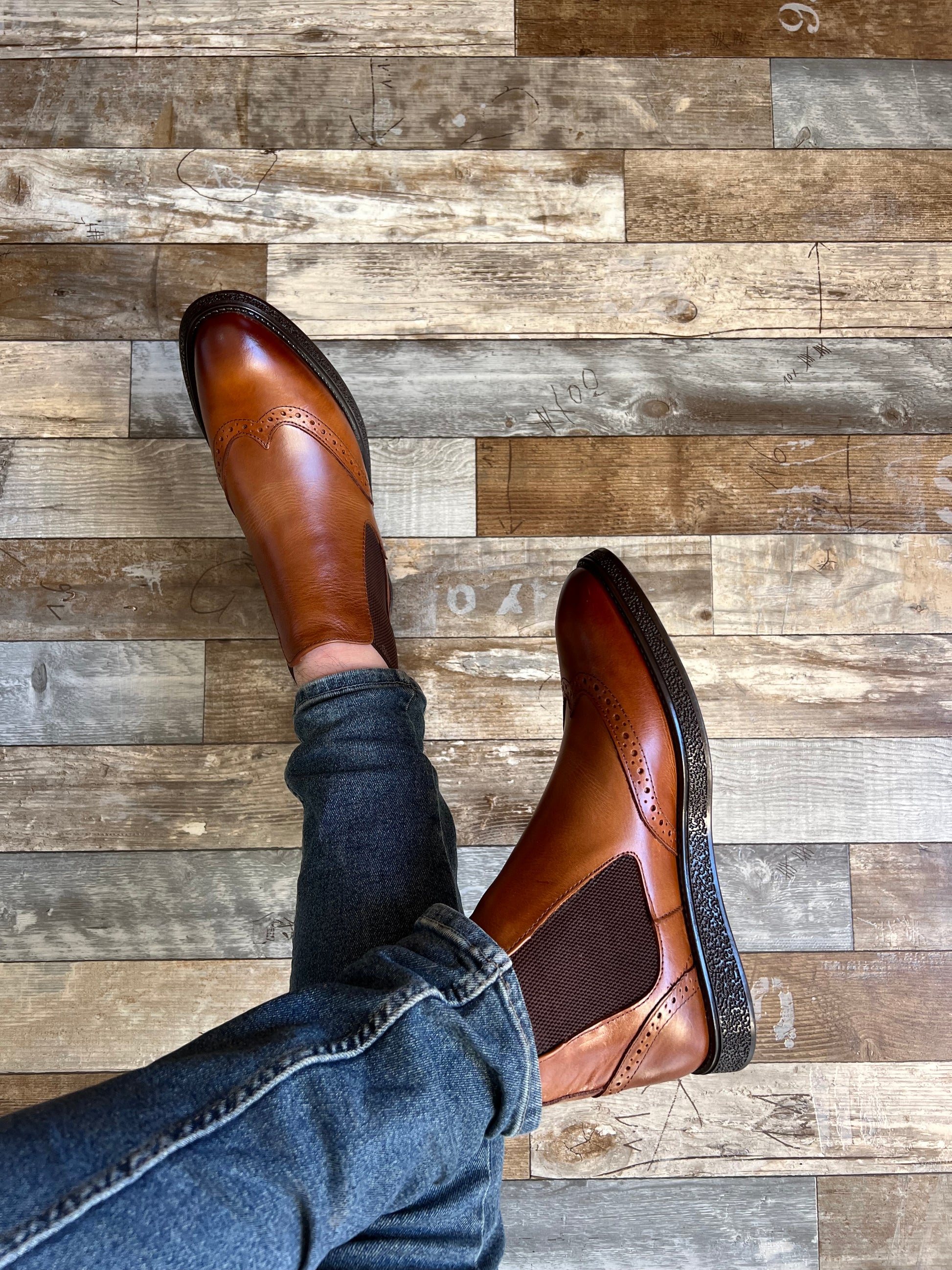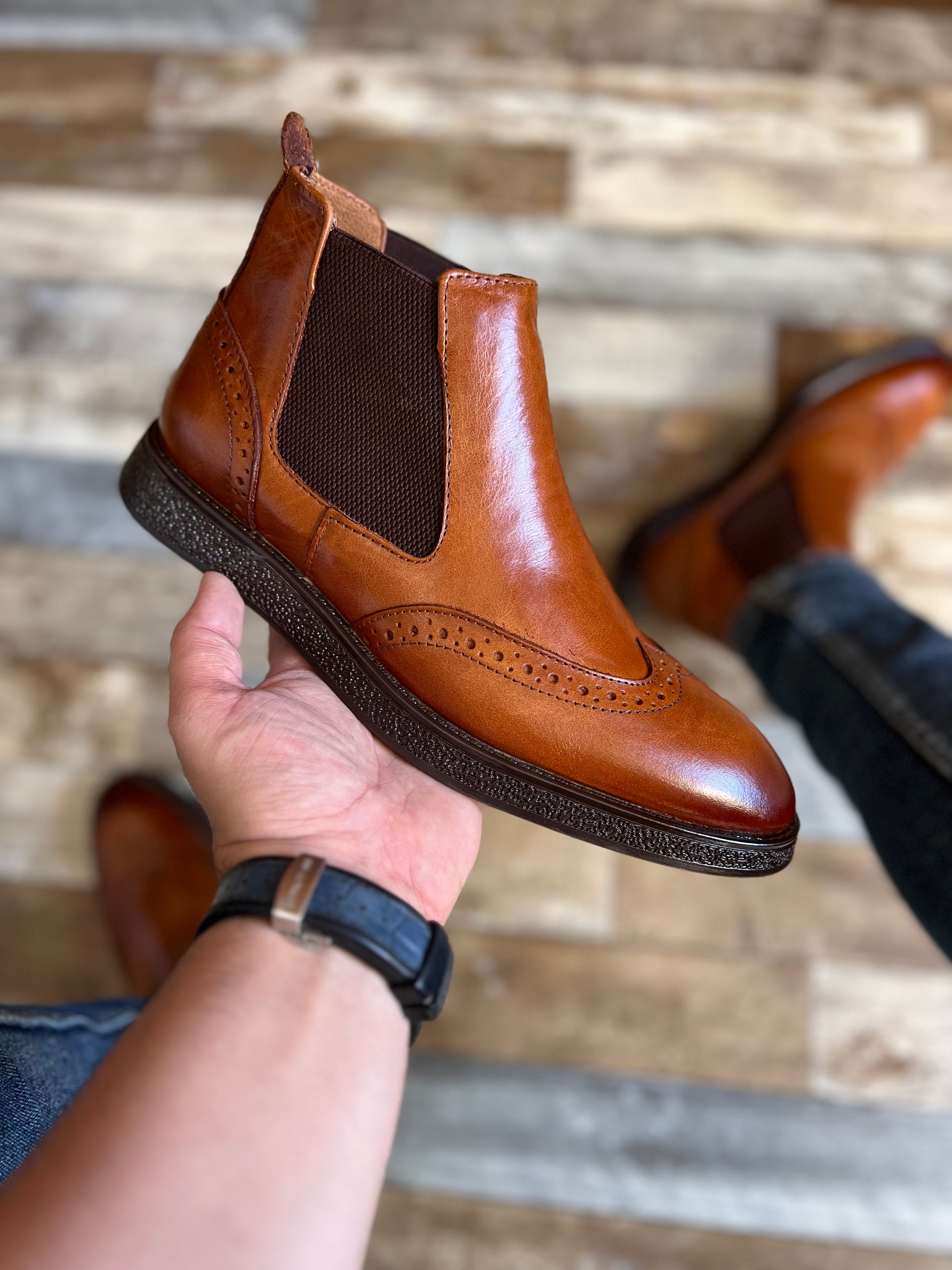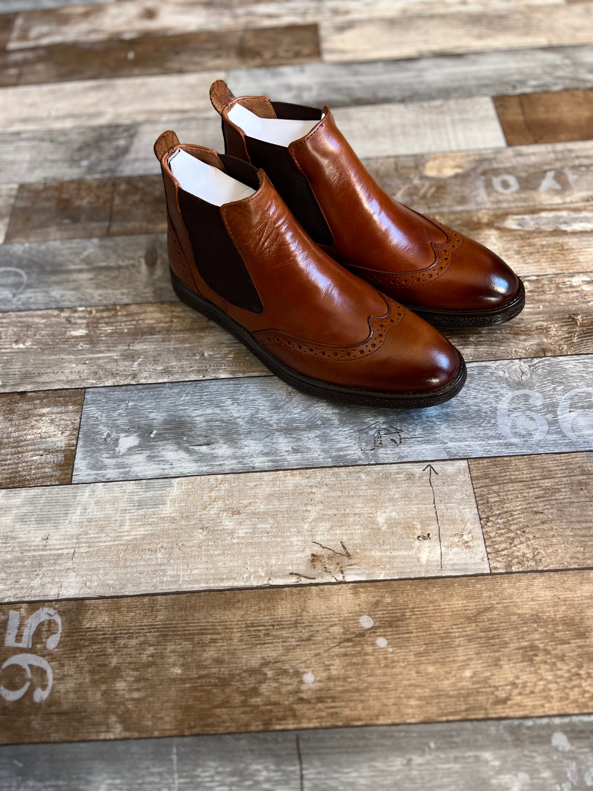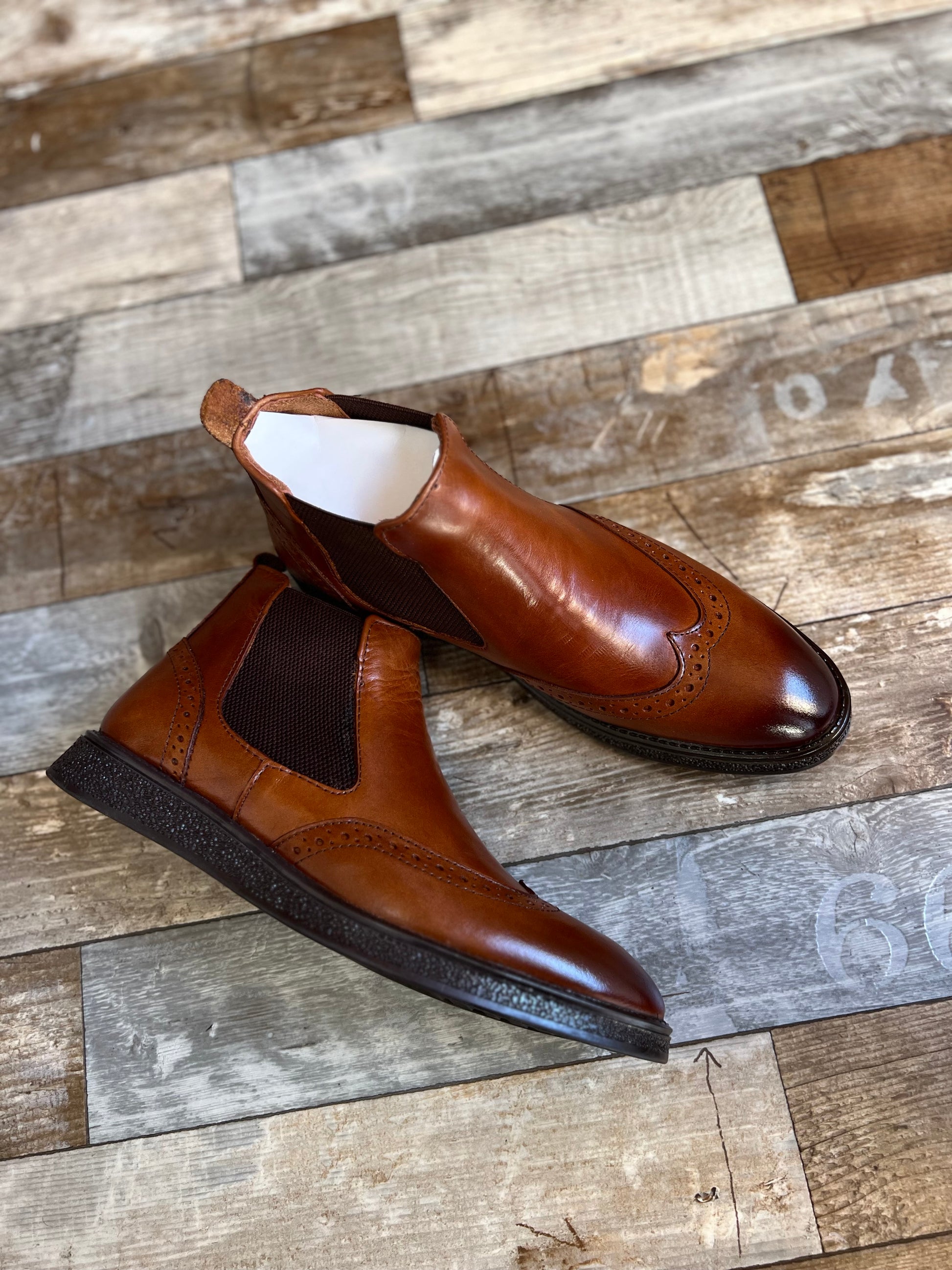 Botte style Chelsea. Dessus lisse. Pièces latérales élastiques et tirette arrière pour faciliter l'enfilage. Dernier tour. Plat avec volume et semelle track.