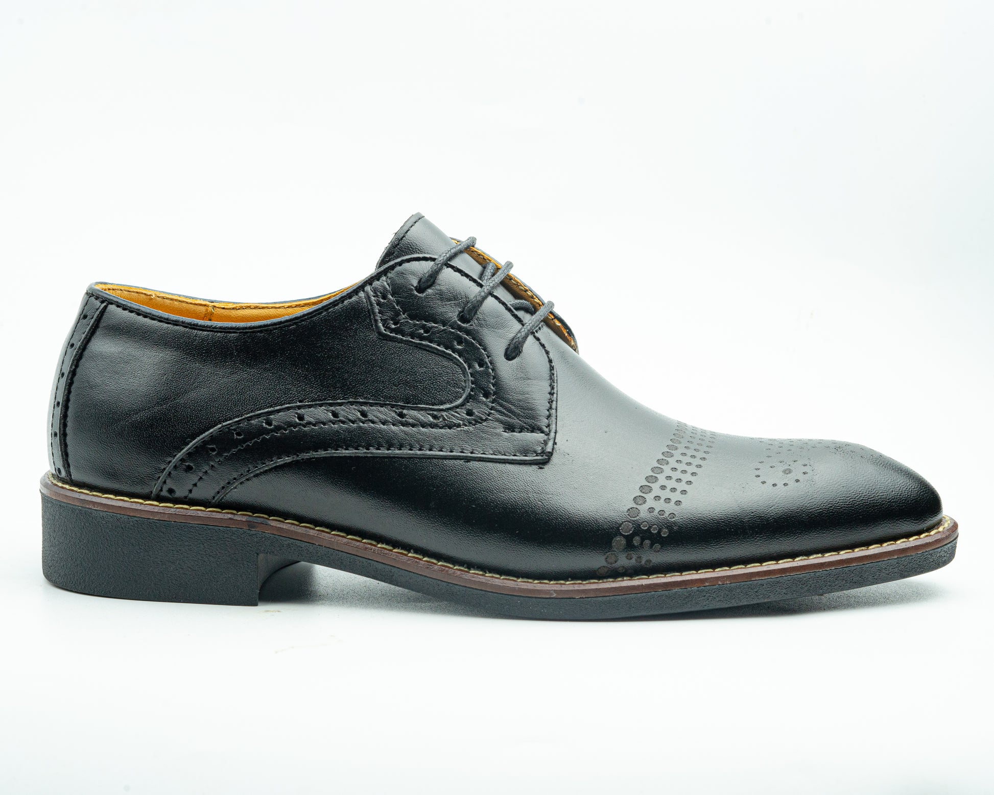 CHAUSSURES HABILLÉES EN CUIR À LACETS NOIRE. BOUT SEMI-ARRONDI. LAÇAGE À TROIS ŒILLETS.