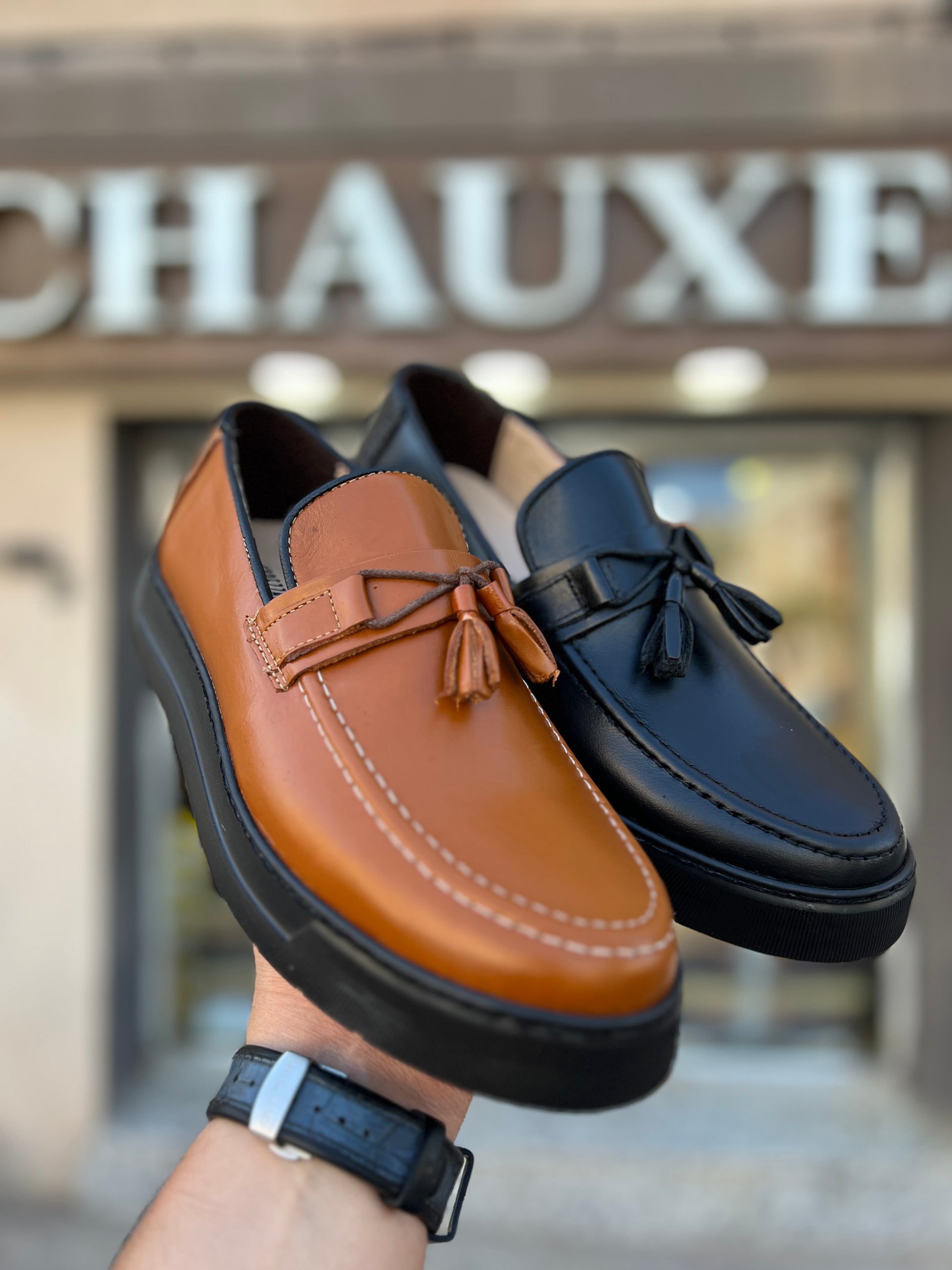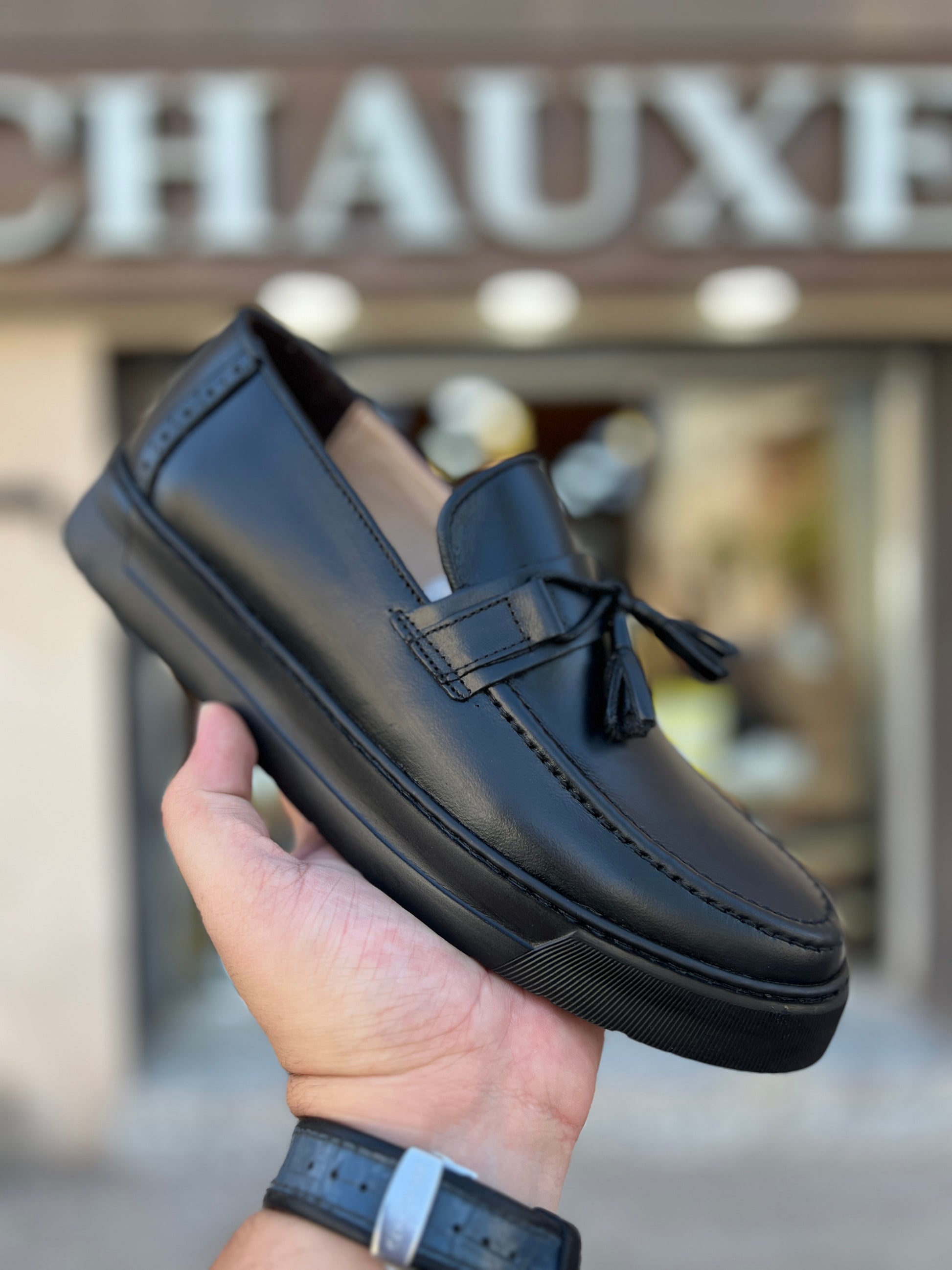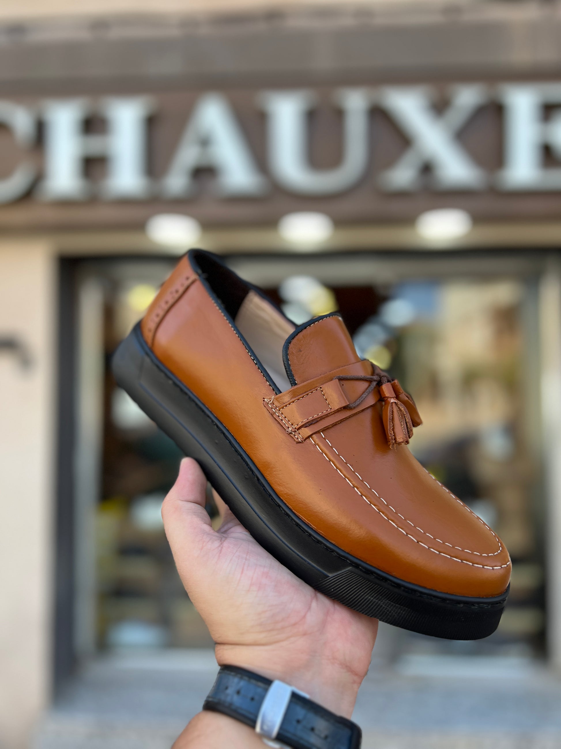 Affirmez votre style avec ce mocassin à pampilles en cuir véritable, alliance parfaite entre élégance artisanale et confort moderne. Confectionné avec soin à partir de cuir premium, il se distingue par sa finition soignée, sa semelle épaisse au design contemporain, et ses détails raffinés tels que les pampilles ton sur ton.