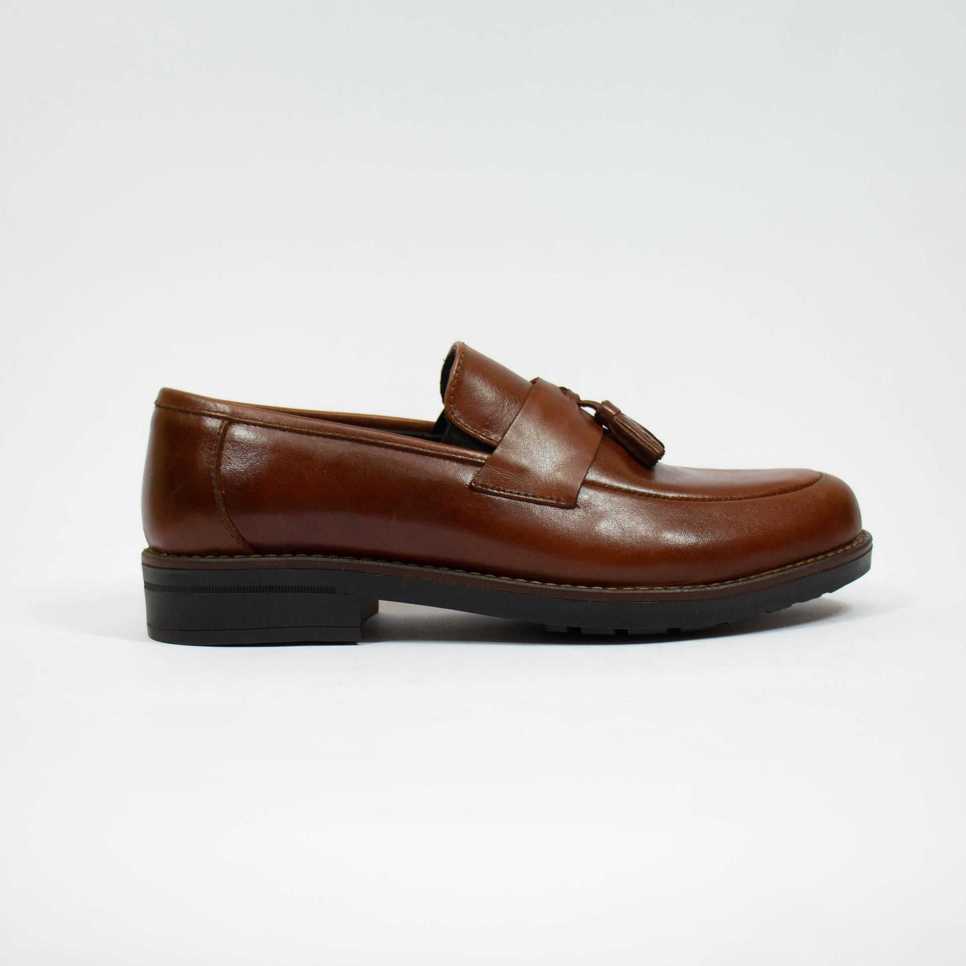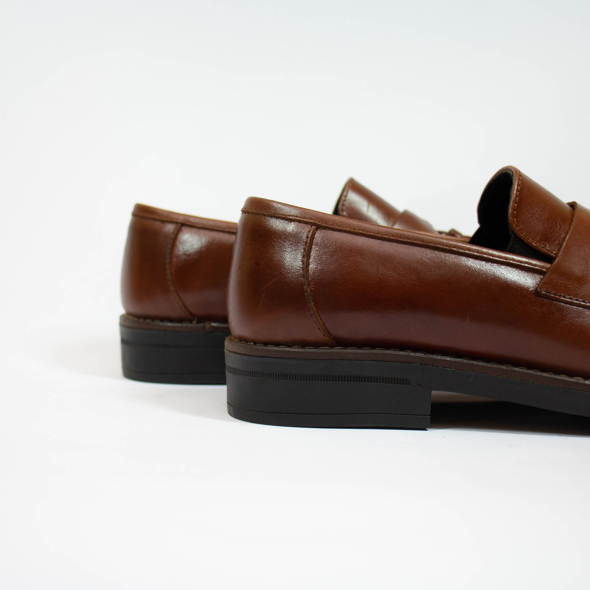 Mocassins en Cuir Construction Souple.. DETAIL DE GLAND FRANGE AU COU DE PIED